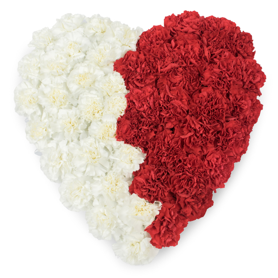 Celebrate special moments with our stunning heart-shaped arrangement of white and red carnations. Designed by Handy Flowers, this bouquet combines classic beauty with a unique design.